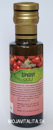 Šípkový olej BIO Šípkový olej je skutočne úžasný. Je až neuveriteľné, že moderní ľudia ho objavili až tak neskoro - s jeho výskumom sa začalo až v roku 1983. Ide o olej z divo rastúcej ruže Rosa rubiginosa . Táto ruža rastie v divokej prírode Chile. Tam jeho účinky domorodci poznajú už celé stáročia. Šípkový olej je prekvapujúco účinný – výrazne redukuje jazvy, vrásky, pôsobí proti starnutiu pleti. Výrazne regeneruje pokožku a navracia jej pôvodnú farbu a jas. Ďalšia významná štúdia bola robená v roku 1988 na ženách vo veku medzi 25 -35 rokov. Všetky vykazovali známky predčasného starnutia pleti. / vrásky, pigmentové škvrny, strata jasu./. Po 4 mesiacoch každodenného !! používania šípkového oleja väčšinou vrásky a škvrny úplne zmizli alebo boli výrazne redukované. Práve preto sa šípkový olej stáva súčasťou drahých protivráskových krémov a je hojne vyžívaný aj kozmetickej a lekárskej praxi. Šípkový olej obsahuje vitamín A v prírodnej forme – ten nám pomáha bojovať proti starnutiu pokožky, je potrebný pri obnove buniek a pomáha k prirodzenému nárastu kolagénu a elastínu v tkanivách. / zlepšuje elasticitu/ . Obsahuje tiež vysoký podiel nenasýtených mastných kyselín a vitamínu E. Šípkový olej bol úspešne aplikovaný na tieto kožné defekty: strie, poškodenie UV žiarením / výborné po lete/ , jazvy po operáciách, akné, popáleninách, ekzémy, psoriáza, vrásky, predčasné starnutie pleti , pigmentové škvrny, popáleniny – odporúčame do šípkového oleja pridať aj éterický olej levandule , starecké škvrny, rozštiepené nechty, suché a poškodené vlasy, veľmi vhodný pre tehotné ženy a bábätká Vnútorné použitie šípkového oleja Šípkový olej je zdrojom vitamínu A, minerálov a nenasýtených mastných kyselín. Má regeneračné účinky, podporuje imunitu a zlepšuje krvný tlak. Šípkový olej je takzvaný suchý olej – to znamená ,že sa rýchlo vstrebáva do pokožky a nezanecháva pocit mastnoty. Je extrémne hydratačný a preniká do suchej a poškodenej pokožky okamžite. Tento olej môžete používať priamo v čistej forme, alebo ho pridávať do krémov, pleťových mliek , masážnych olejov.