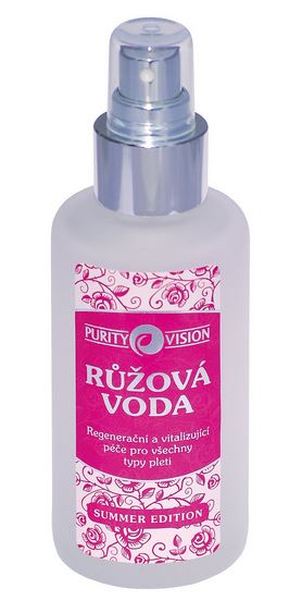Všetky popísané účinky má iba 100% čistá ružová voda bez prímesí, dodatočných vonných látok a olejov, konzervačných látok a barviv. PURITY VISION garantuje naprostou čistotu a ekologické pestovanie.