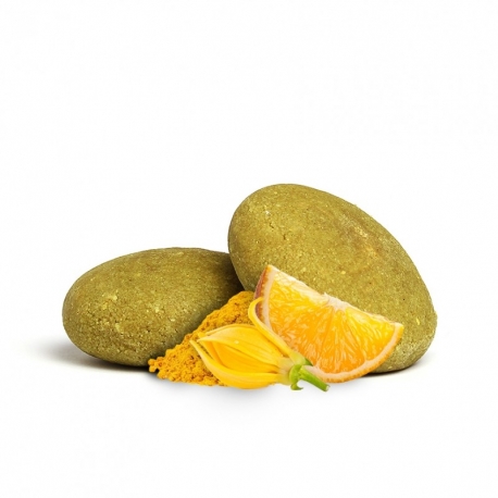 Zloženie: Sodium Cocoyl Isethionate (povrchovo aktívna zložka rastlinného pôvodu), Cocomidopropyl Betaine (povrchovo aktívna zložka rastlinného pôvodu), Bentonit*, Cetyl Alcohol (emulgačná zložka rastlinného pôvodu), Cetearyl Alcohol (emulgačná zložka rastlinného pôvodu), Cananga Odorata Flower Extract (ylang - ylang)*, Citrus Sinensis Peel Oil (pomaranč)*, Glycerin (glycerín rastlinného pôvodu), Argania Spinosa Kernel Oil (arganový olej)*, Prunus Amygdalis Dulcis Oil (olej zo sladkých mandlí)*, Cocos Nucifera Oil (kokosový olej)*, Butyrospermum Parkii Butter (bambucké maslo)*, Curcuma Longa Powder (kurkumovník dlhý)*, Panthenol (kyselina pantotenová), Allantoin (aktívna zložka z kostihoja lekárskeho (Symphytum Officinale))*, Silk Amino Acid (sericin), Hydrolyzed Silk (hydrolyzovaný hodváb)