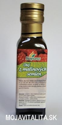 Olej z malinových jadier BIO. 100% olej lisovaný za studena zo semien. Olej je bez umelých konzervačných látok a umelých farbív.